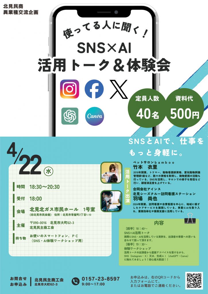 民商では異業種交流企画としてSNS×AI活用トーク&体験会を開催します。